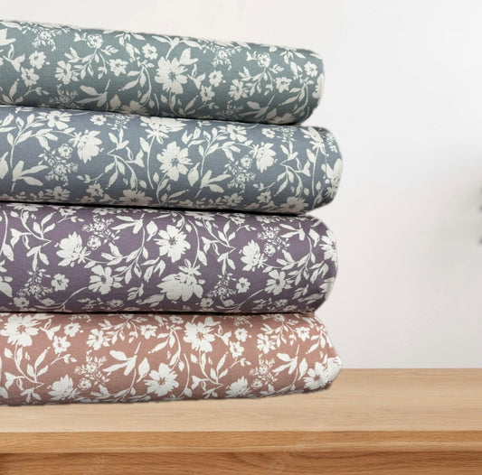 November Floral in White on Unbrushed Rib Knit, Sold by the Half Yard