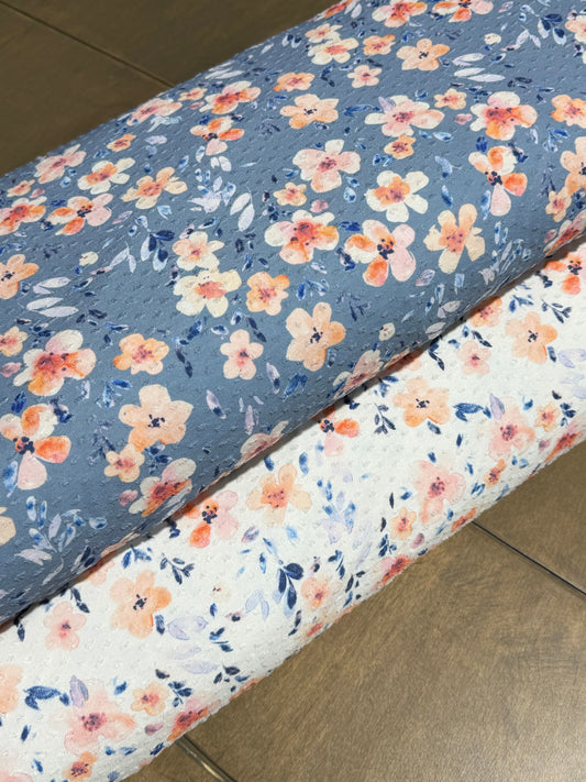 Lottie Floral in Blue on Swiss Dot Knit, Sold by the Half Yard