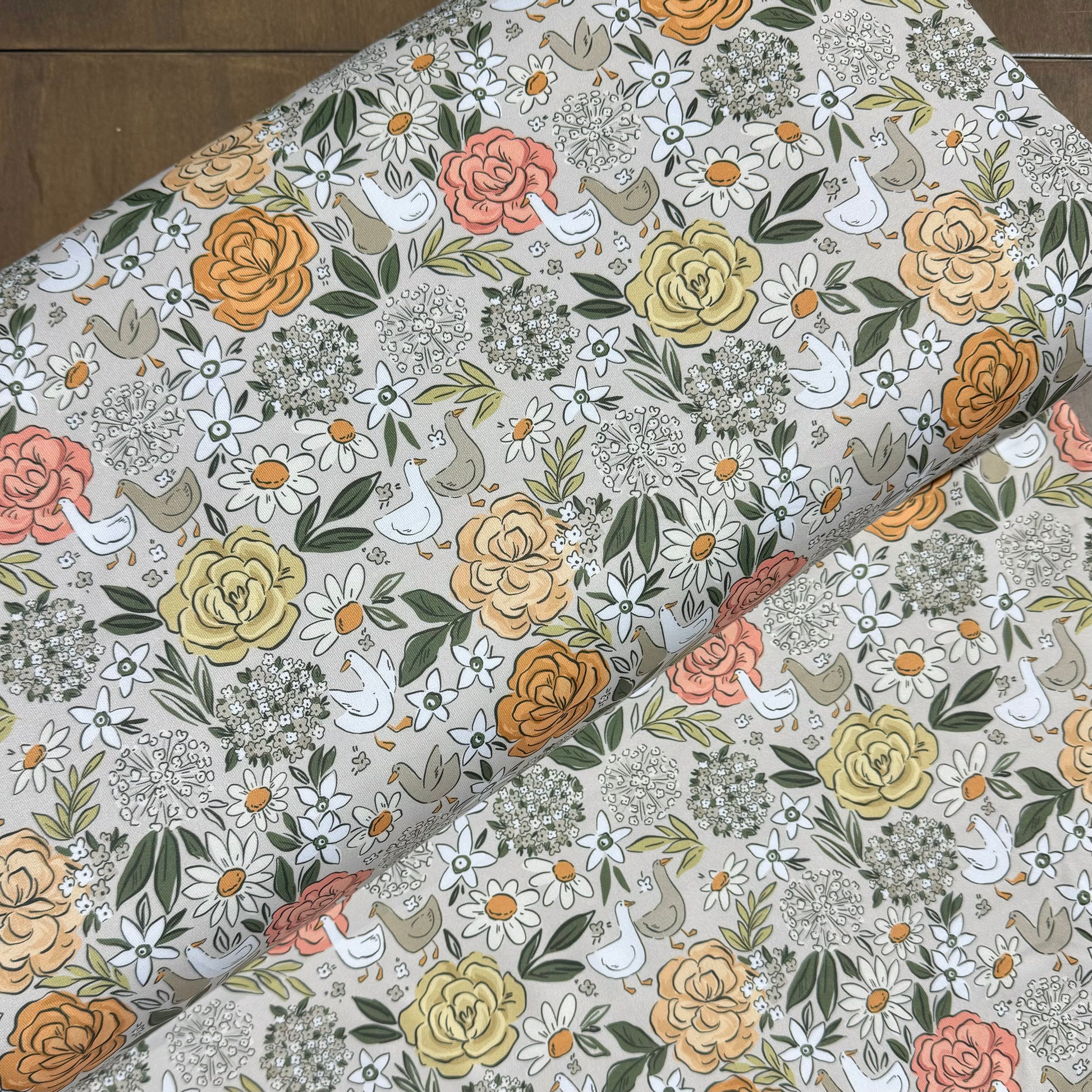 Ducks & Blooms on Eureka Jersey Knit, Sold by the Half Yard