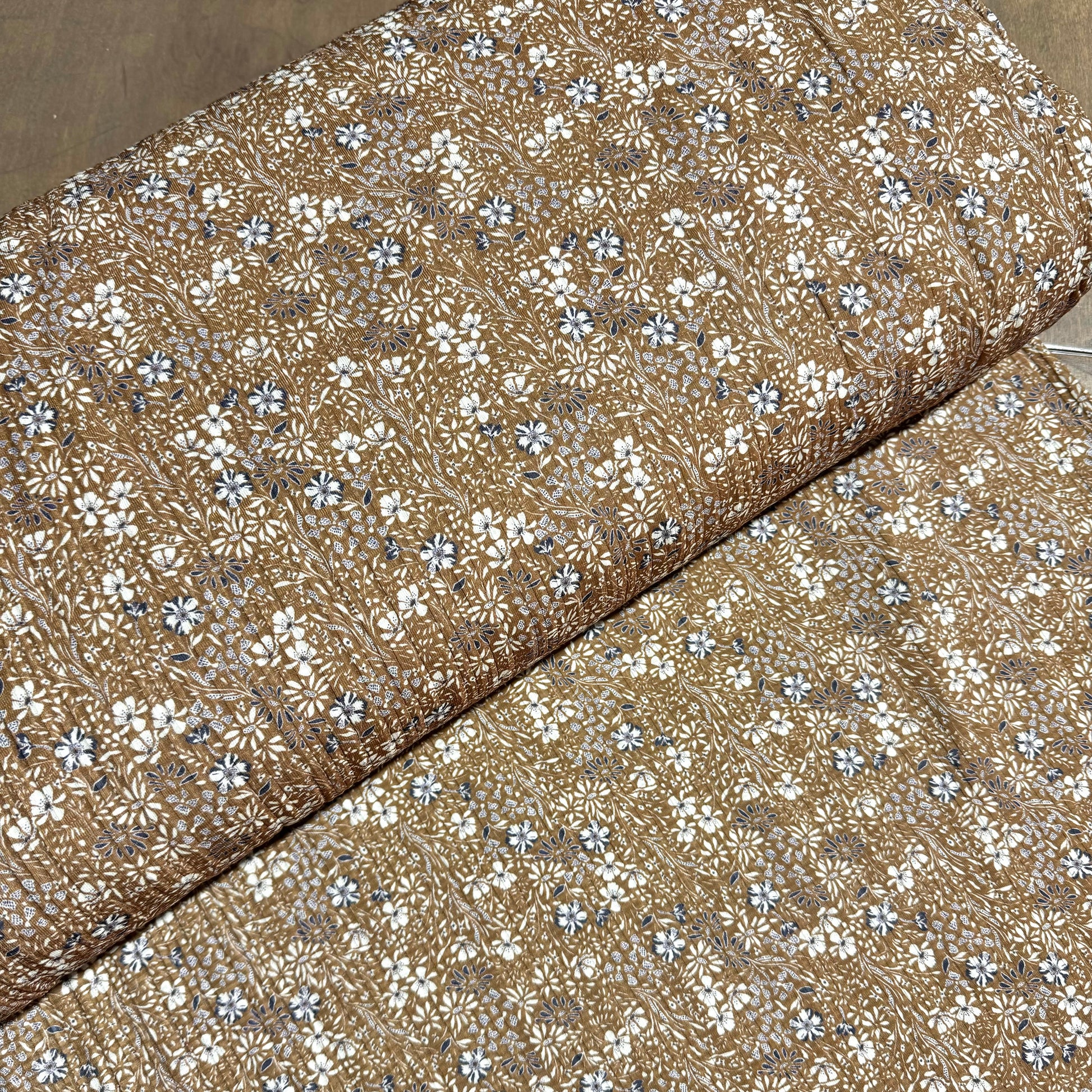 Elsie Vintage Floral in Olive on Summer Breeze Knit, Sold by the Half Yard